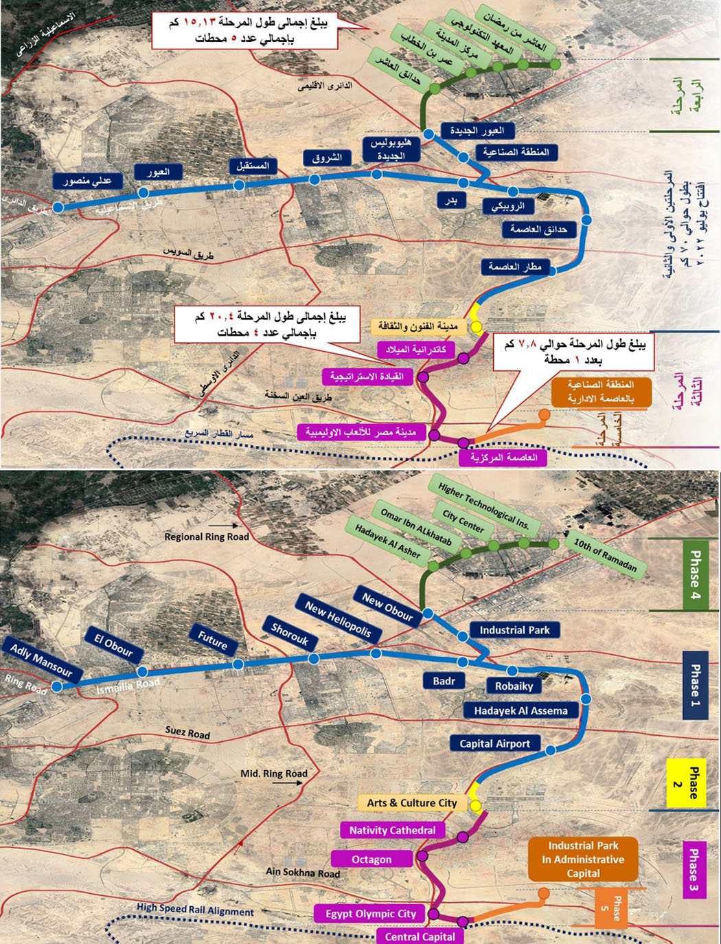 تحقق المرحلة الثالثة تبادل خدمة نقل الركاب مع القطار الكهربائي السريع (السخنة – مطروح ) في محطة العاصمة المركزية ومستقبلاً مع المرحلة الرابعة من الخط الرابع للمترو في محطة مطار العاصمة.